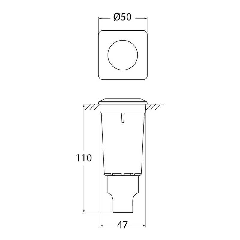 Luz empotrable de suelo con forma circular, hecha de resina a prueba de impactos, resistente a la oxidación, corrosión y a los rayos UV. Requiere 1 foco base GU10. Clase de aislamiento II, grado de protección IP67. CERTIFICACIONES 1. Norma ISO 9001-2015 2. Marca CE 3. IECEE CB Scheme Medida de corte: Ø85x127mm
