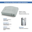 - Protector de voltaje para refrigeradoras (neveras) domésticas. - SUPRIME: voltajes transitorios y sobrevoltajes. - DESCONECTA: automáticamente ante voltajes dañinos. - CONECTA: automáticamente cuando el voltaje es seguro. - Aplicaciones del Producto: Refrigeradoras (neveras) domésticas de cualquier capacidad, enfriadores de agua y de vino. - Capacidad, Corriente, Joules, Voltaje, Frecuencia: 1800 VA/W, 15 A, 115 Joules, 120 VAC, 60 Hz - Tiempo de reconexión: 3 minutos - Conexión de Entrada: Nema 5-15P - Conexión de Salida: 1 toma nema 5-15P